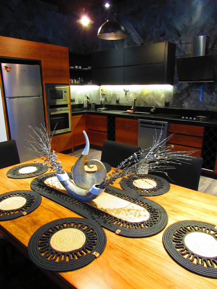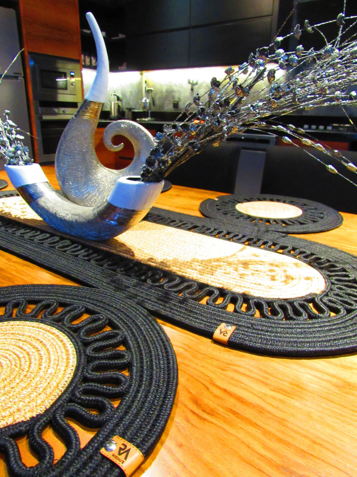Jüt Görünümlü Natural Dekoratif Dalgalı Siyah - Kırçıllı Jüt Renk Runner Supla Takımı tamamen el yapımıdır.